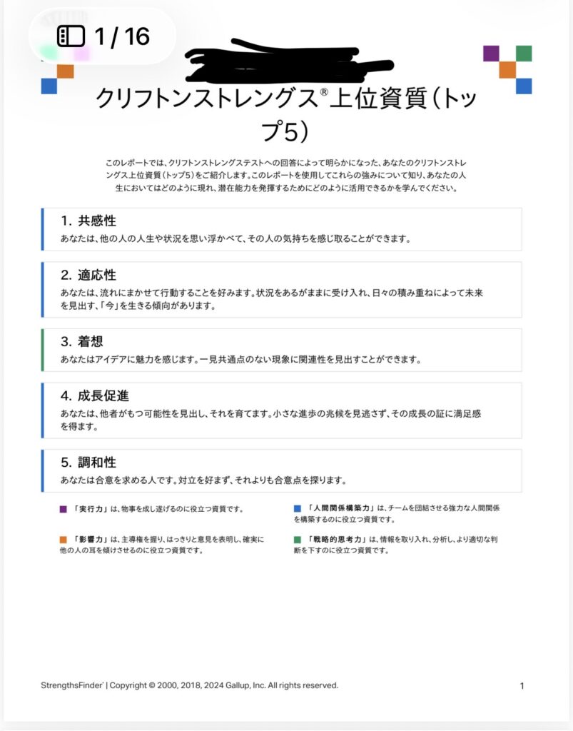 ストレングスファインダーは、34資質を確認できるので金額が約8,450円(2026/04/07現在)と少し高めなので、全部ではなく5つでもいいという人向けに書籍の特典で知ることができます!